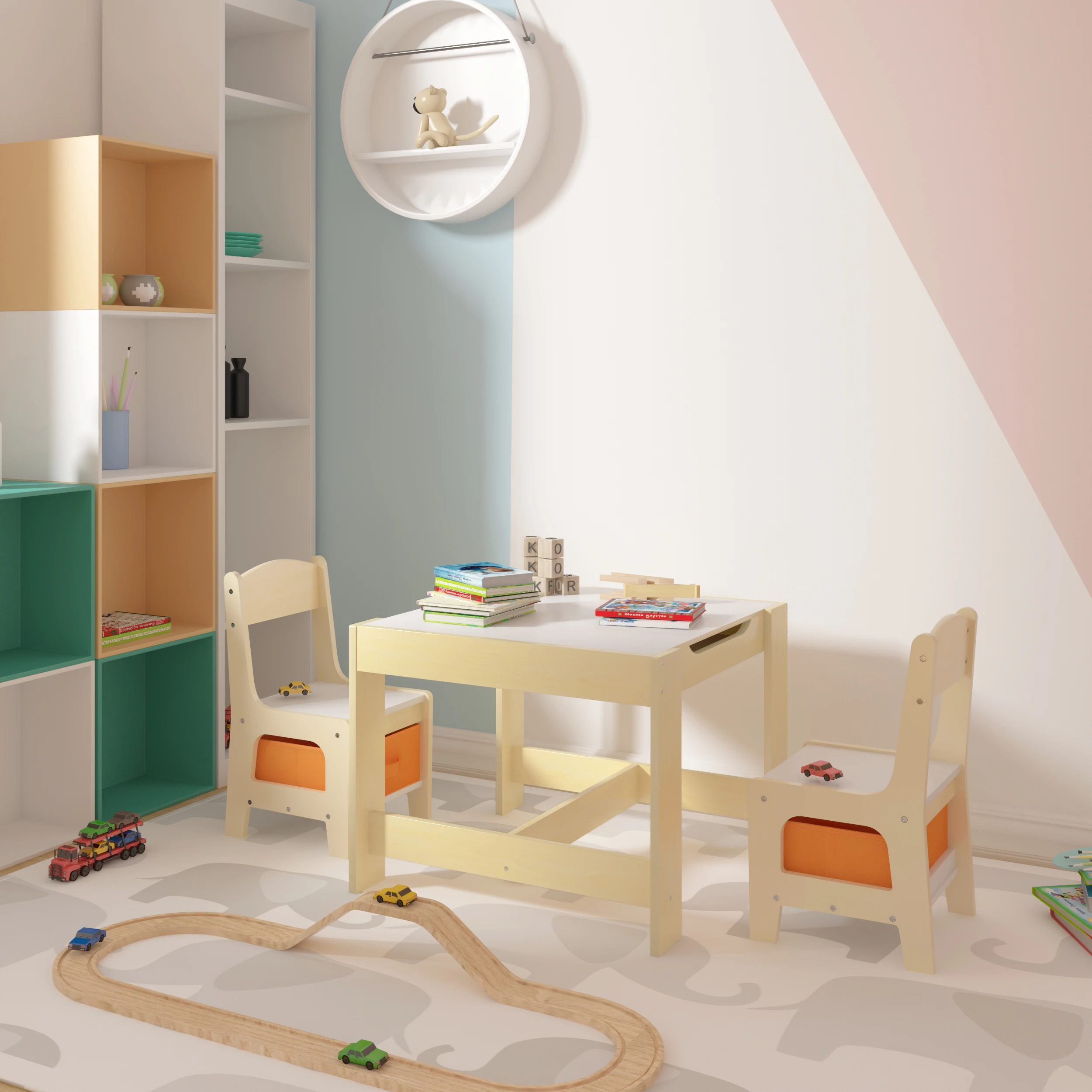 ♡AnteprimaWOLTU Tavolo per bambini con 2 sedie Tavolo da pittura Set di sedie Set di posti a sedere per interni per bambini Spazio di archiviazione per tavolo da studio per bambini91.40 EUREUR 197.79Hot★★★★★1.0