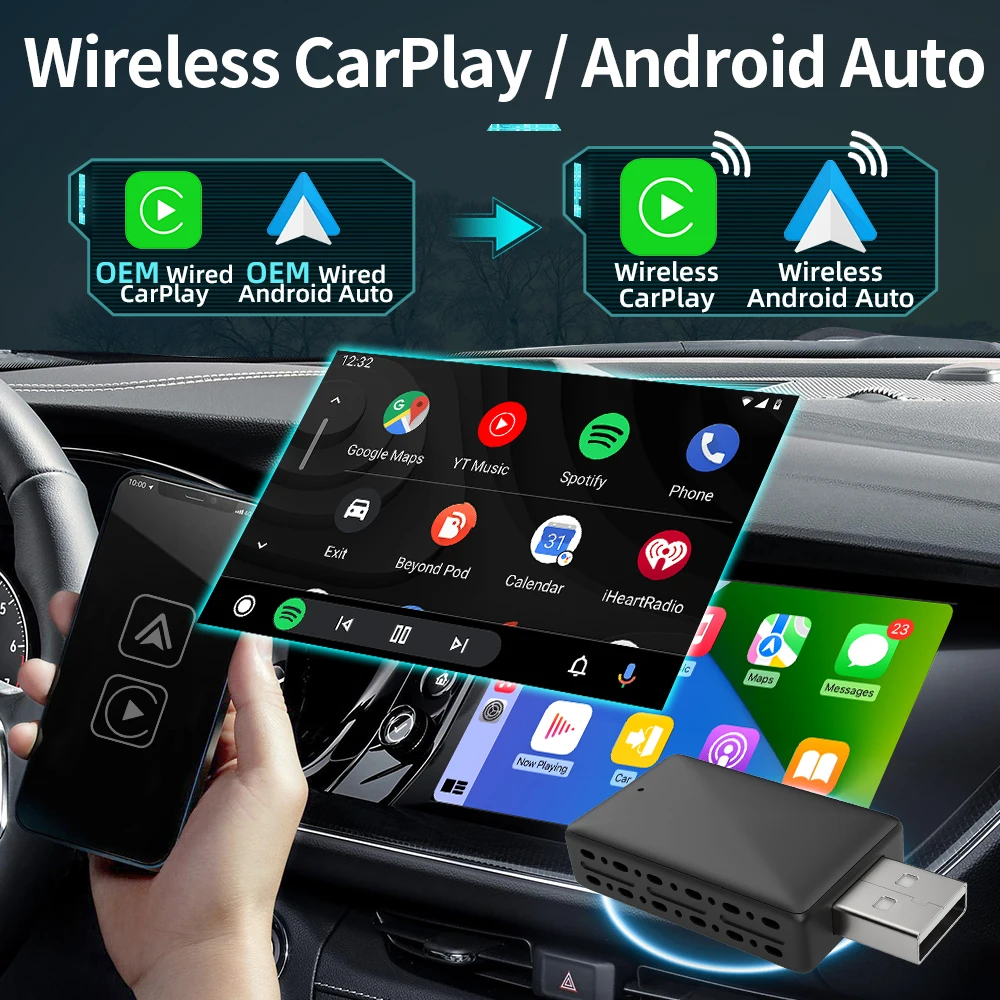 ↑Nuovo aggiornamento 2 in 1 cablato a wireless CarPlay Android Auto Adattatore per lettore auto OEM USB Plug and Play Riconnessione automatica Dongle - TopDealBox