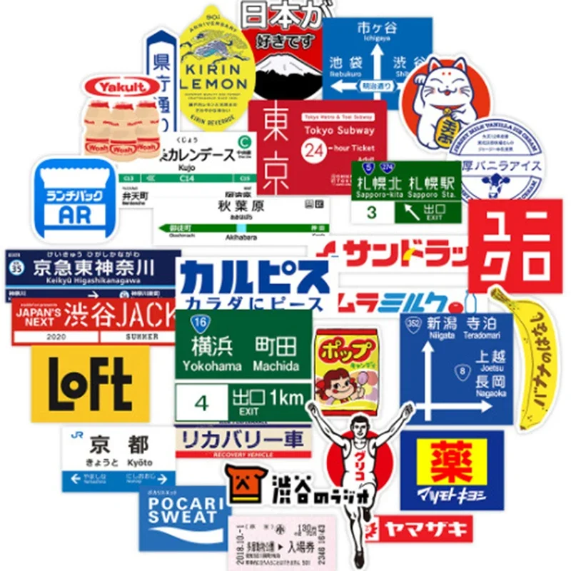 ↑Confezione di adesivi con logo del segnale di stop giapponese da 31 pezzi per adesivo per valigia da viaggio per laptop - TopDealBox