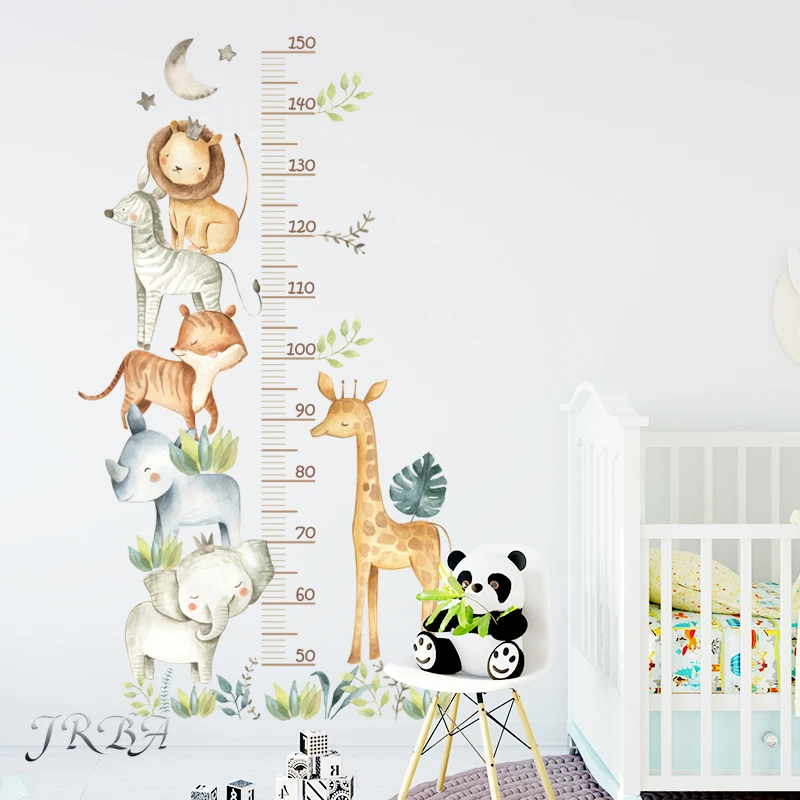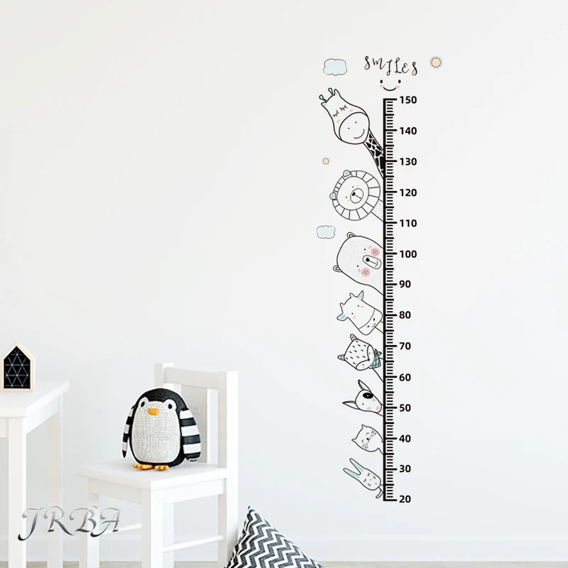↑Adesivi murali con righello di altezza animale cartone animato 3 pezzi per la decorazione domestica della scuola materna della camera dei bambini in PVC rimovibile impermeabile - TopDealBox
