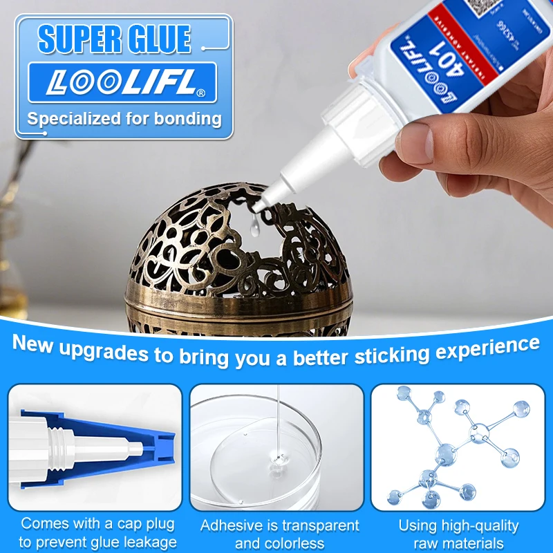 ↑LOOLIFL 20g 401 Istantaneo Forte Super Colla Universale Supercolla Potente Colla Istantanea per Resina Ceramica Metallo Vetro Riparazione Rapida FAI DA TE - TopDealBox
