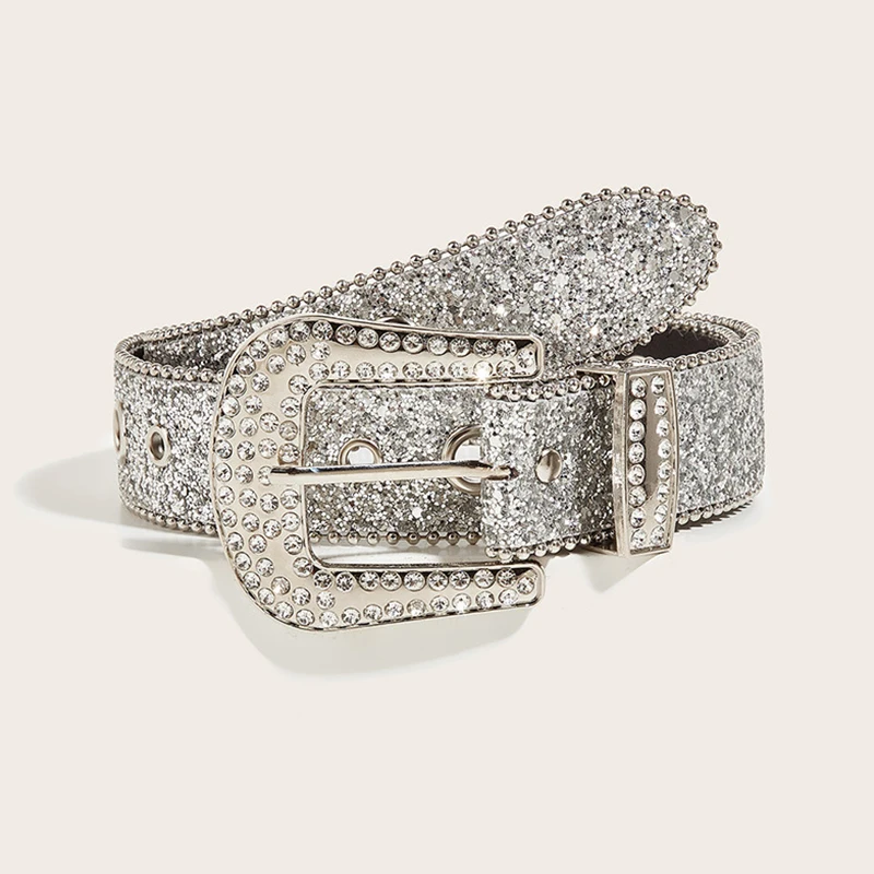 Cinture Desinger per donna Cintura femminile di lusso di alta qualità con paillettes Strass Fibbia All-Eyelet Punk Goth Y2k Cintura dorata da uomo - TopDealBox