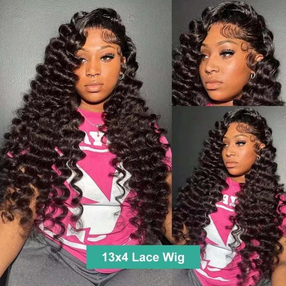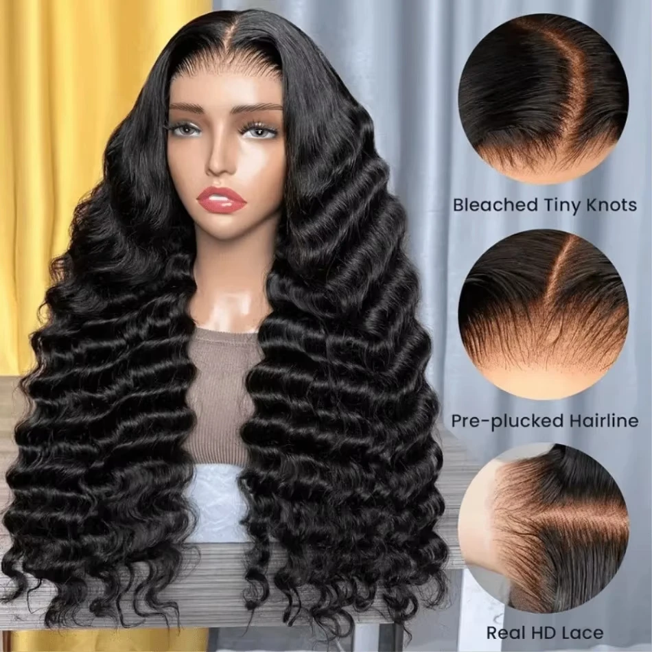 ↑Dialola Parrucca Anteriore Del Merletto Dell'onda Profonda Sciolta 13x6 Onda Del Corpo Allentata 13x4 Frontale Del Merletto Parrucca Nera Naturale Dei Capelli Umani Pre-Pizzicati Per Le Donne - TopDealBox