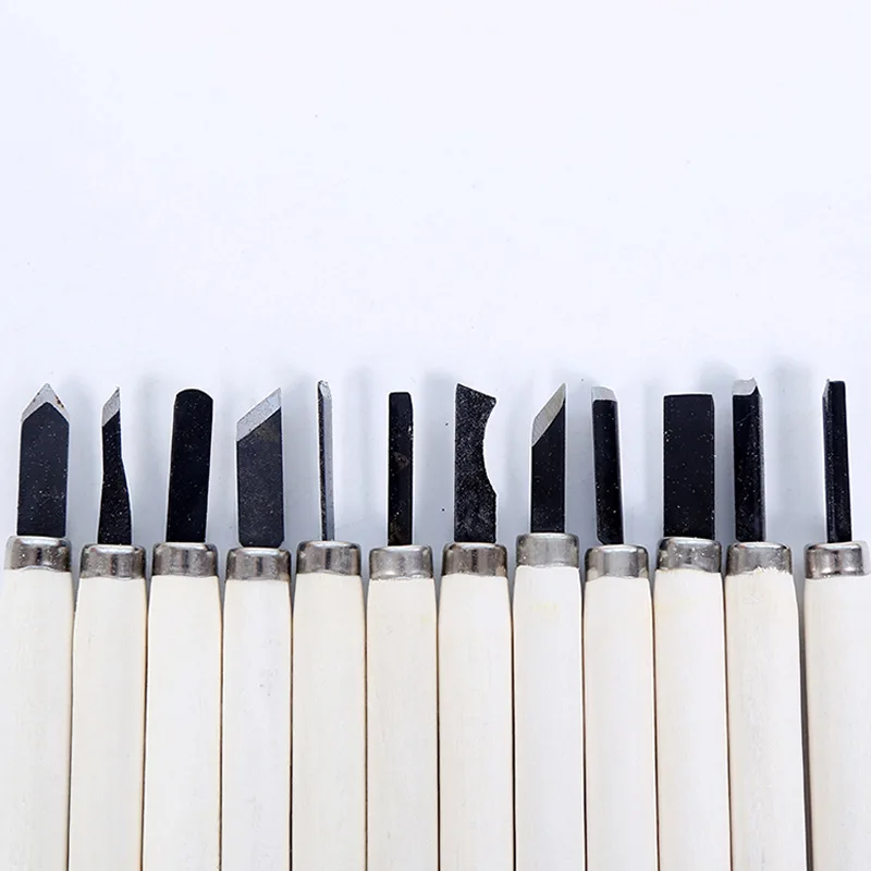 ↑Set di scalpelli per intaglio del legno da 12 pezzi per taglio base e lavorazione del legno dettagliata Kit di coltelli per sgorbie per utensili manuali fai-da-te - TopDealBox