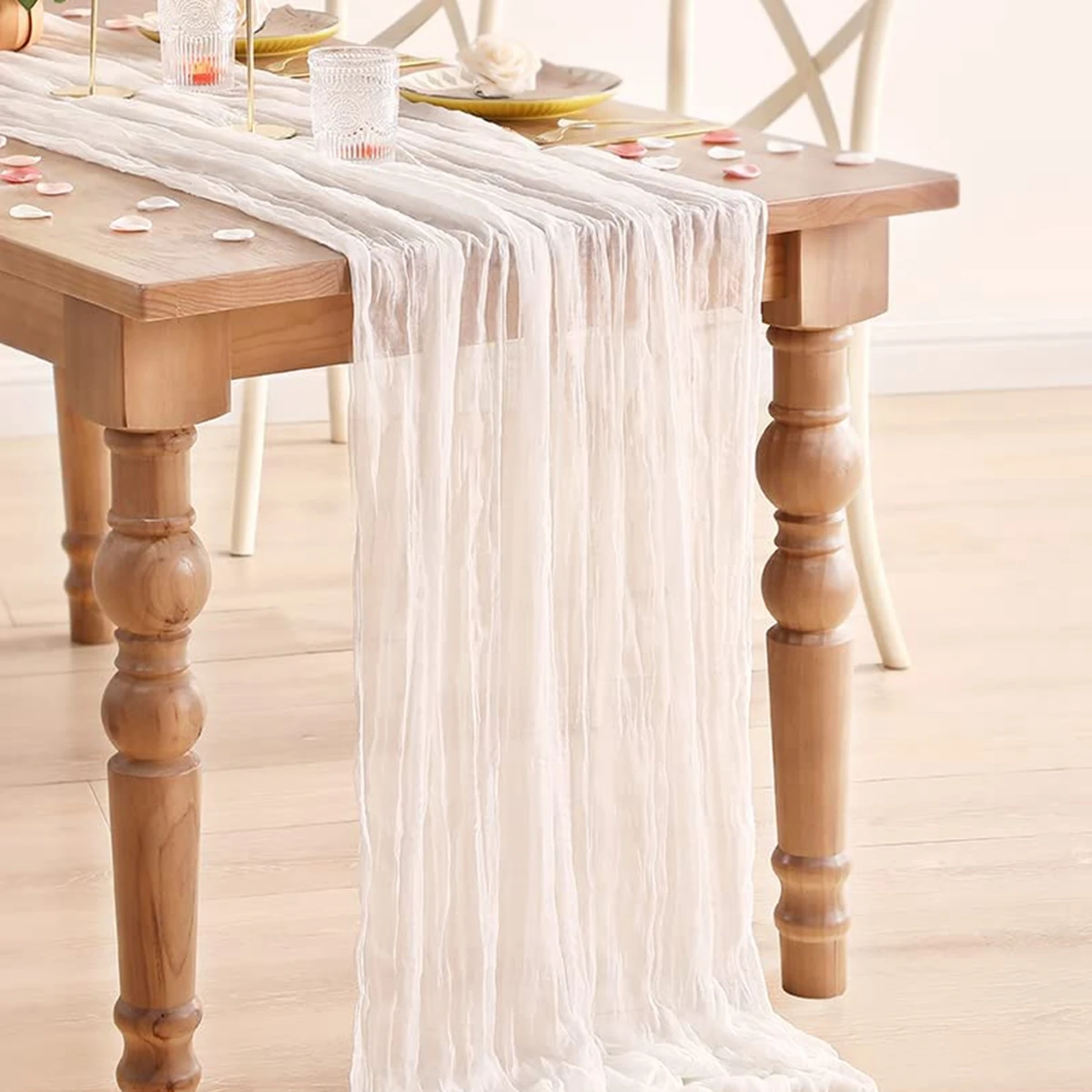 ↑Runner da tavola bianchi in garza semitrasparente Matrimonio vintage rustico Compleanno Decorazione di nozze Banchetti Archi Boho Decor Copritavolo - TopDealBox