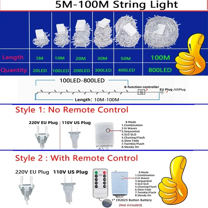 β‘Anteprima5M-100M Ghirlanda LED String Light Luci natalizie da esterno per albero giardino strada festa di nozze patio decorazione di Capodanno5.89 EUREUR 62.45Hotβ β β β β β 4.6