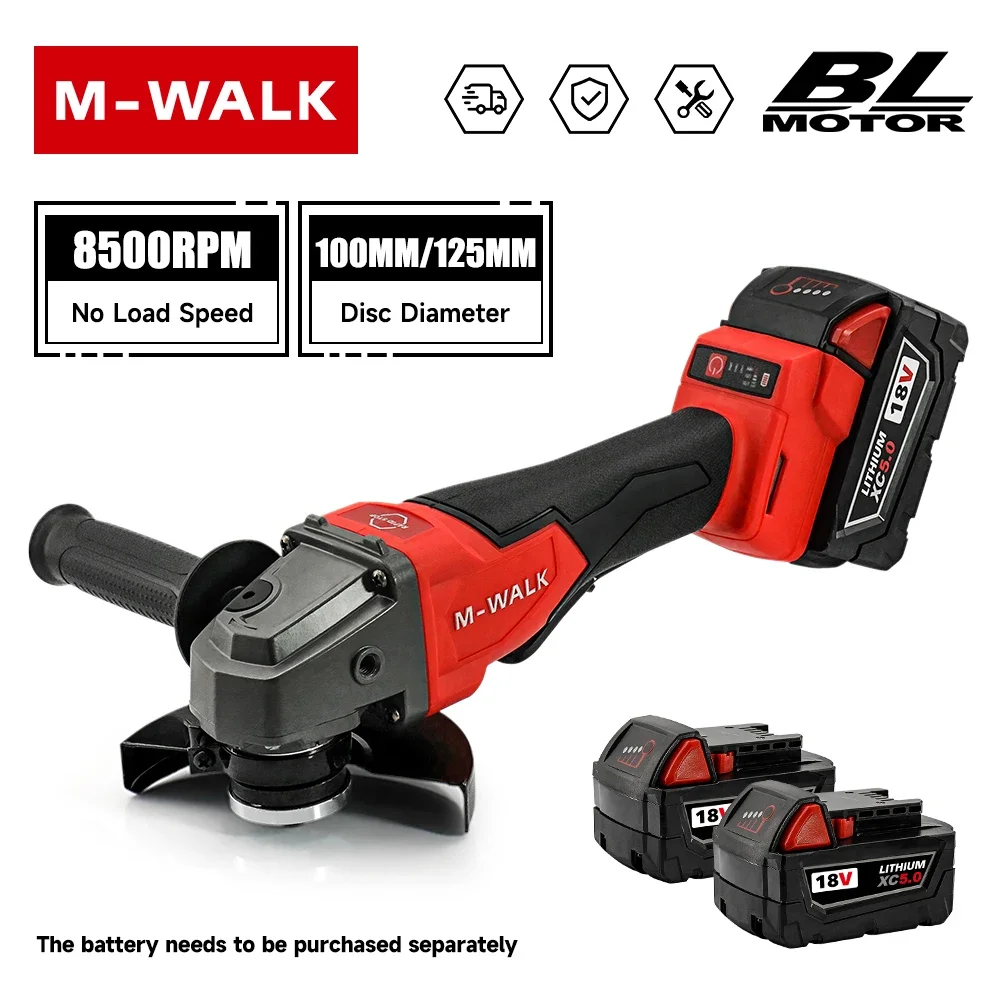 ↑M-WALK Smerigliatrice angolare elettrica senza spazzole Smerigliatrice a batteria Macchina da taglio per la lavorazione del legno Utensile elettrico per Milwaukee 18V Batteria Pin - TopDealBox