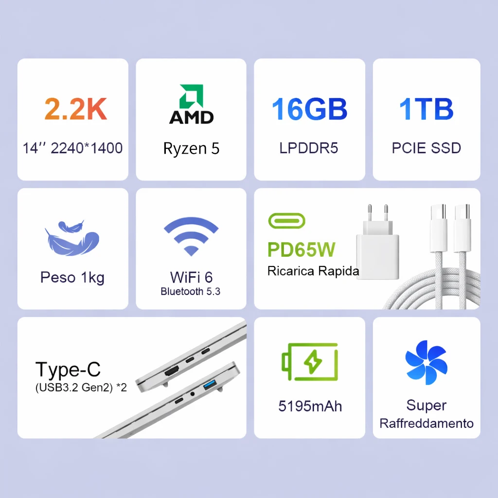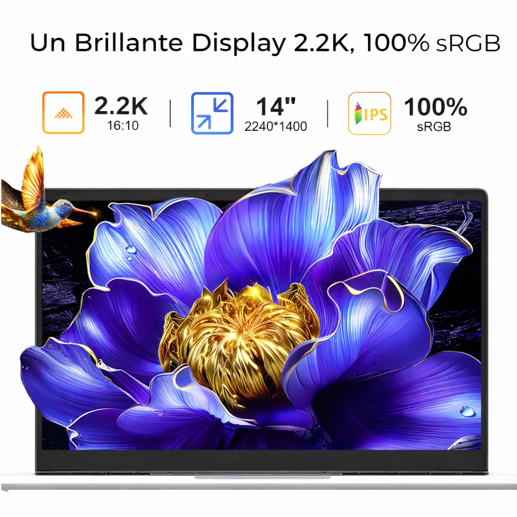↑PC Portatile Ninkear S14 14 Pollici Schermo 2.2K AMD Ryzen 5 16GB LPDDR5 1TB SSD WiFi 6 Riconoscimento Impronta Digitale Notebook Leggero per Ufficio Studenti Multimediale - TopDealBox