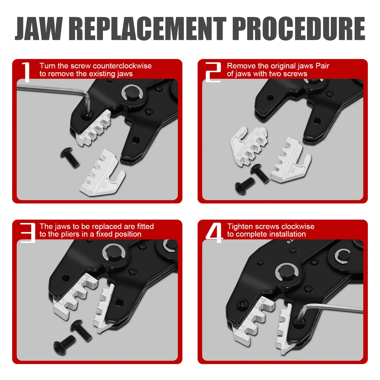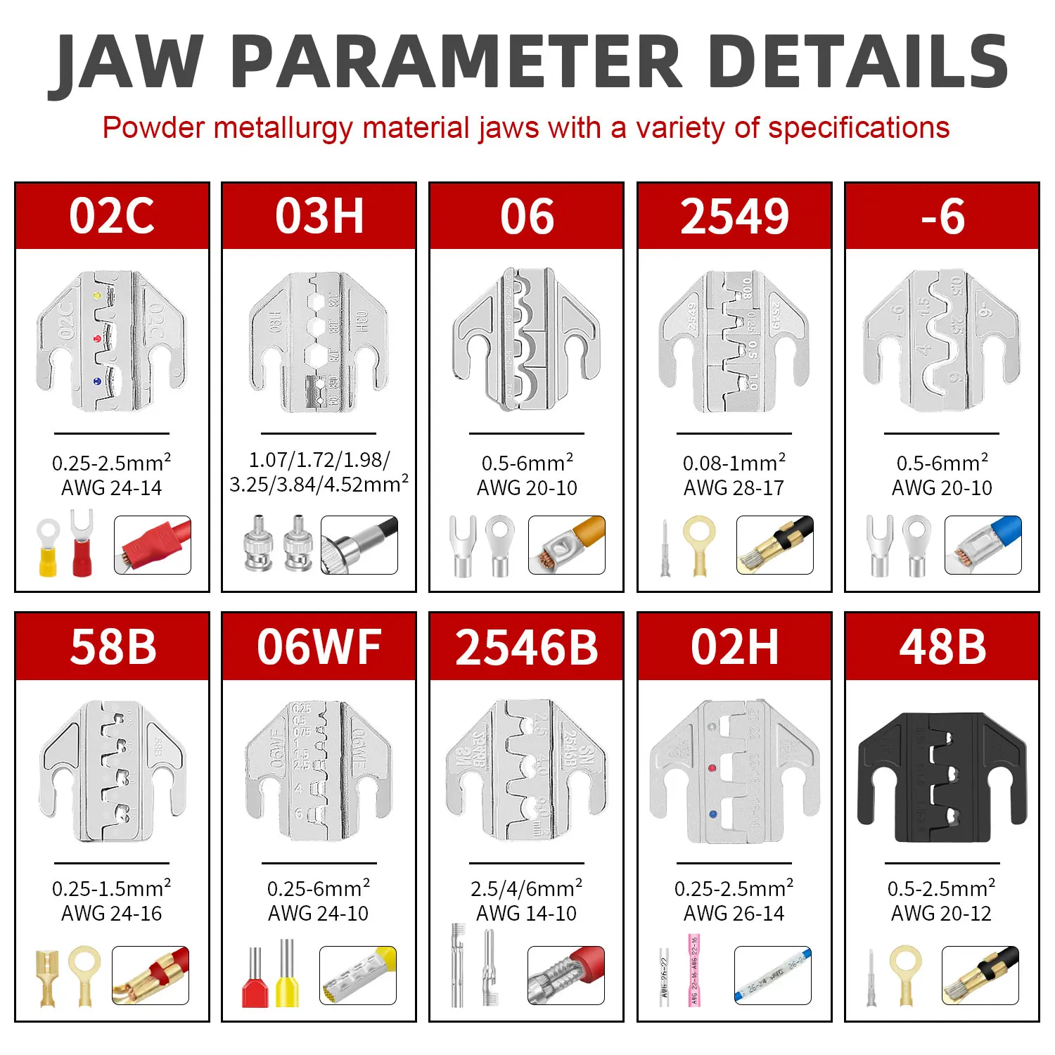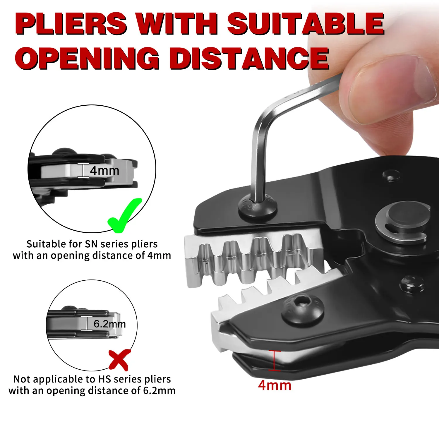 ↑Pinze per crimpare SN Set di ganasce a crimpare, ganasce con fessura da 4 mm, SN-48B/58B/02C/2546B/2549 /06/02H/-6/06WF/03H, utilizzate per crimpare terminali - TopDealBox