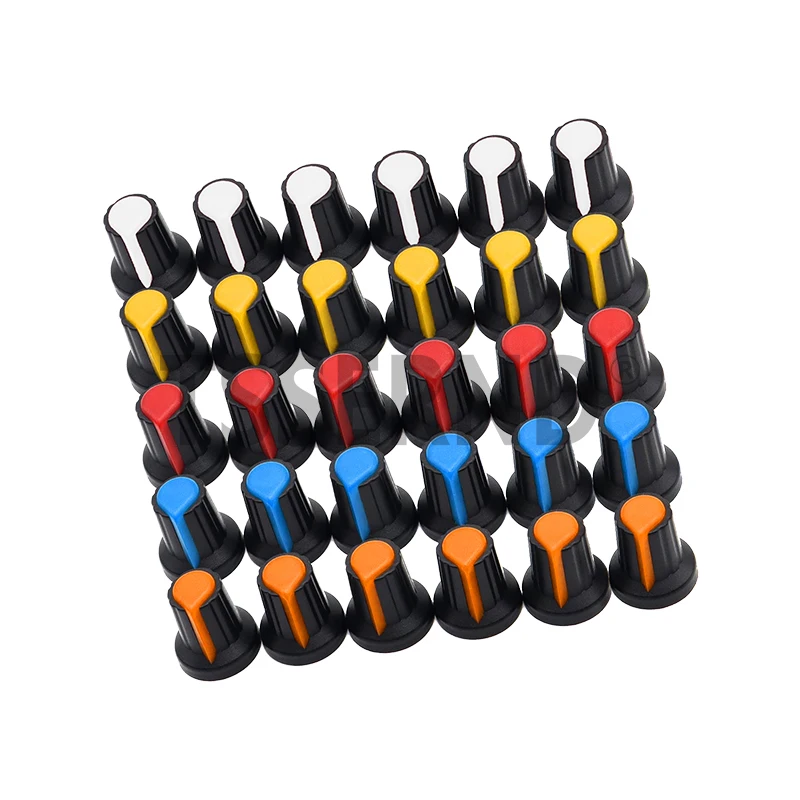 ↑30 pz WH148 Manopole del Potenziometro 15X17mm 6mm Manopole di Plastica del Potenziometro Tappo 5 colori Giallo Arancione Blu Bianco Rosso - TopDealBox