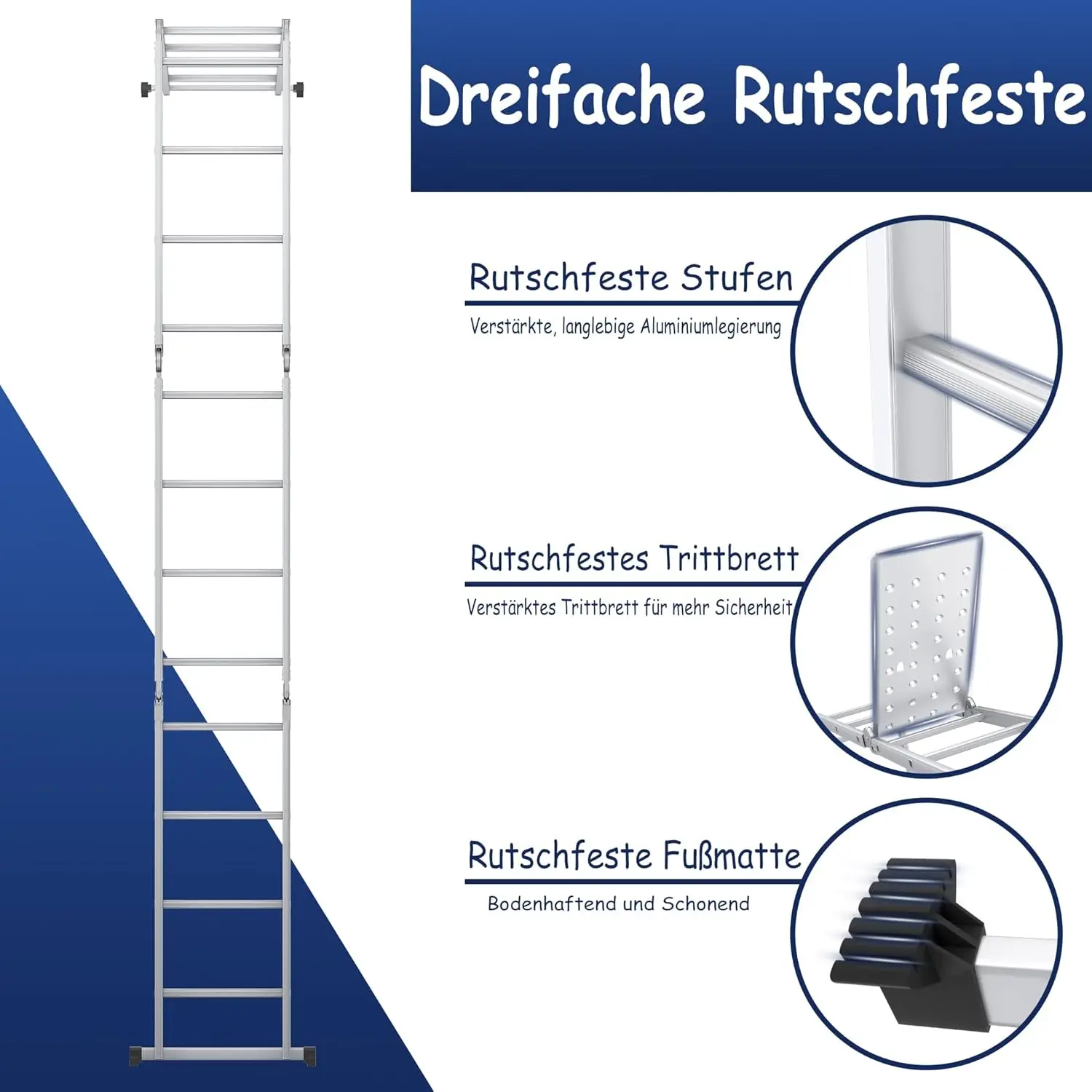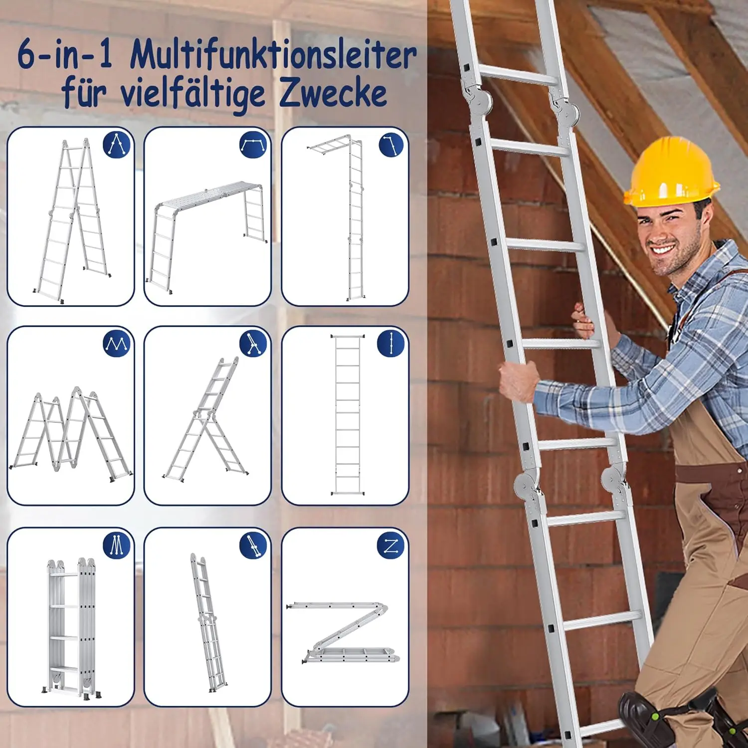 Scala multiuso 6 in 1, scala con giunto in alluminio, scala pieghevole, 340 cm, multifunzionale, scala combinata con piattaforma, - TopDealBox