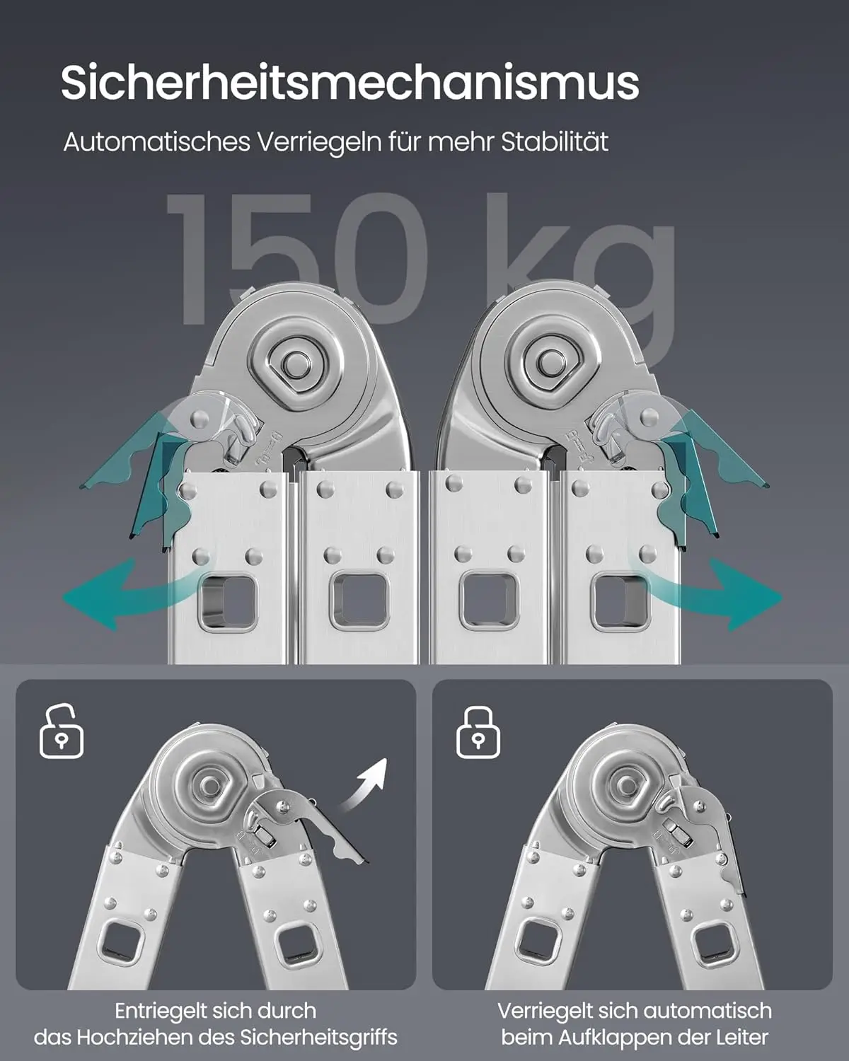 ♡AnteprimaPiattaforma di lavoro in alluminio, banco da lavoro pieghevole con tappetini antiscivolo, capacità di carico di 150 kg, scala a pioli con serrature di sicurezza, per casa, spento56.77 EUREUR 267.17Hot