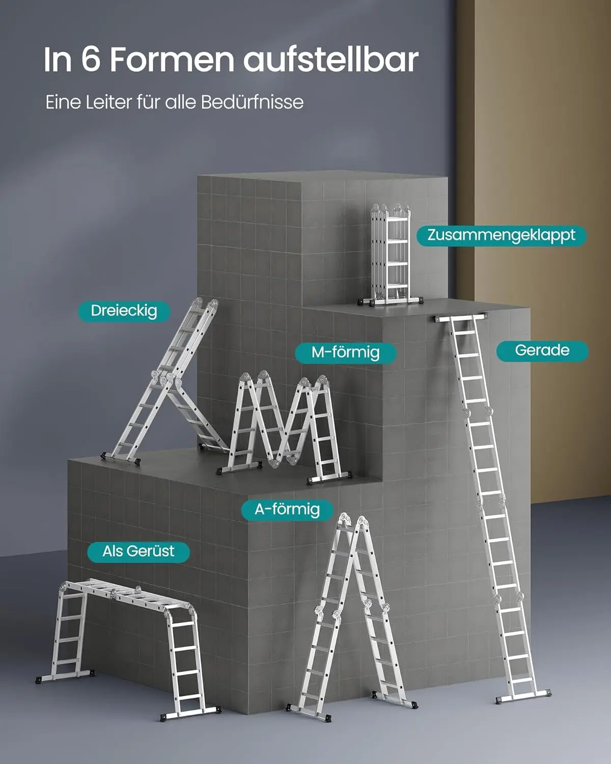♡AnteprimaPonteggio in alluminio 4 in 1, altezza massima 276 cm, capacità di carico 150 kg, piattaforma mobile con 2 ruote, 2x6 rungs, versatile ladd99.90 EUREUR 302.97Hot