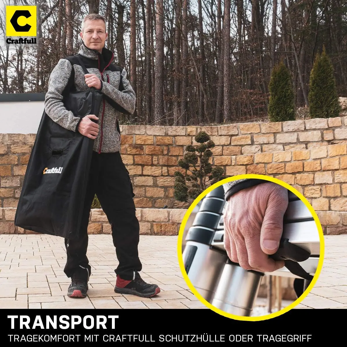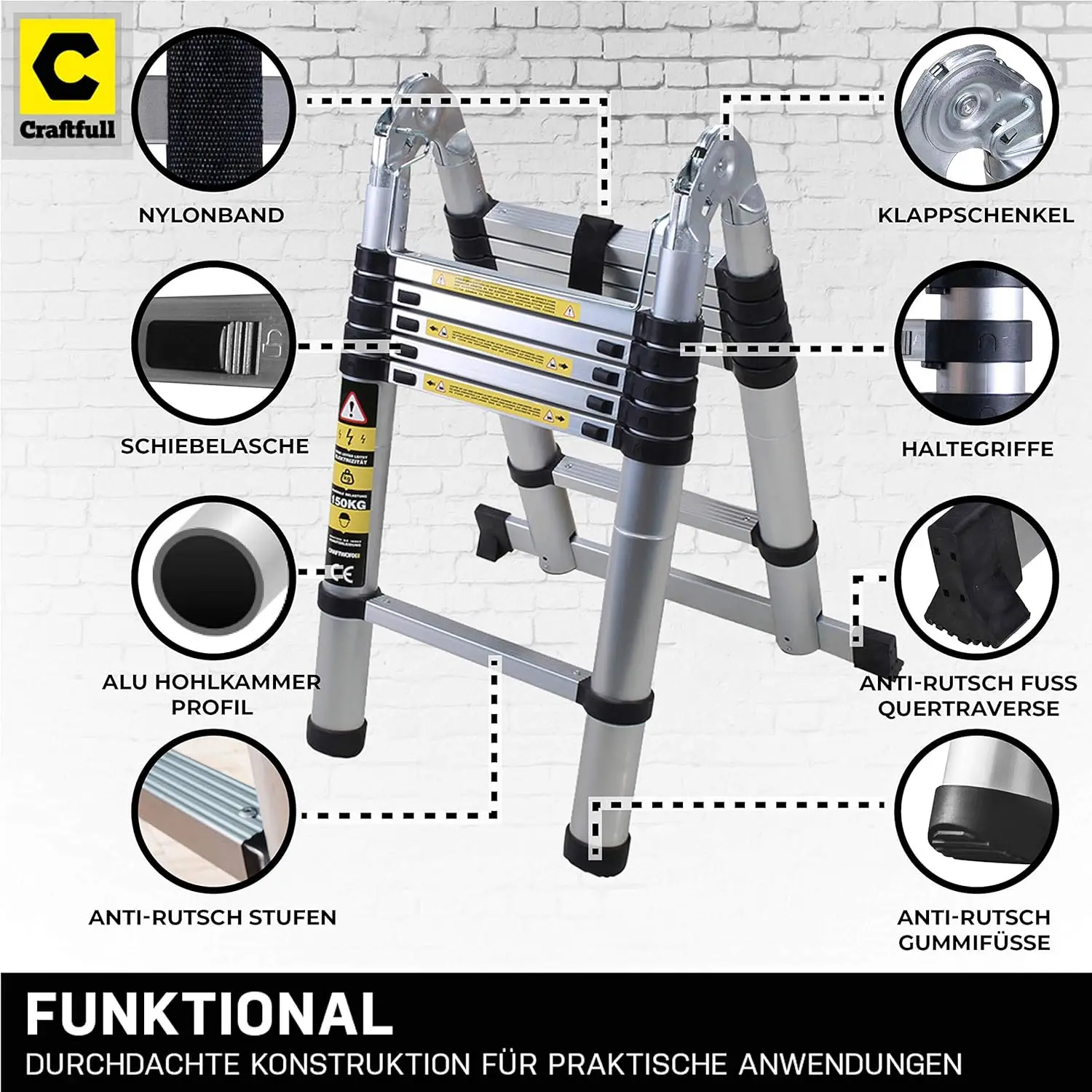Scala telescopica in alluminio, 3.2/3.8/4.4/5/5, 6m, con borsa per il trasporto. Funzioni come scala pendente e gradino, argento. - TopDealBox