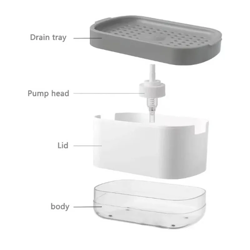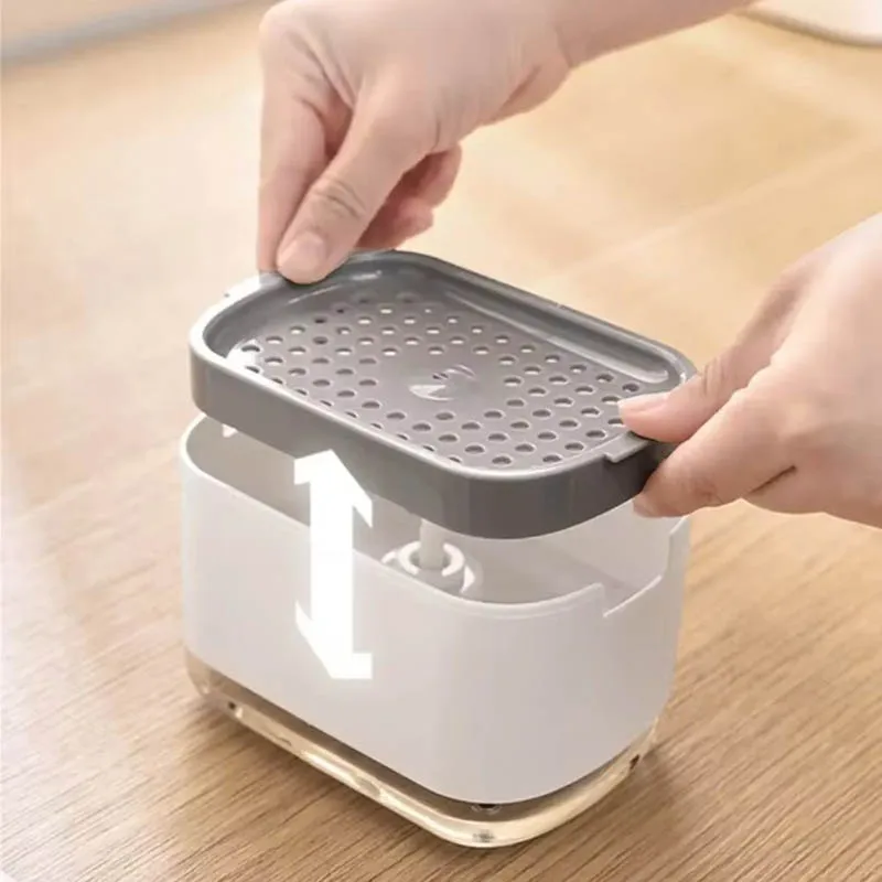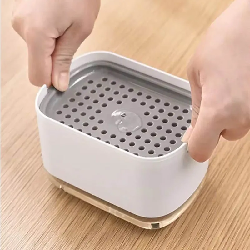 ↑Scatola dispenser di sapone Dispenser a pressa Contenitore per liquidi per lavaggio Cucina Bagno Scatola automatica per schiuma detergente con supporto per spugna - TopDealBox