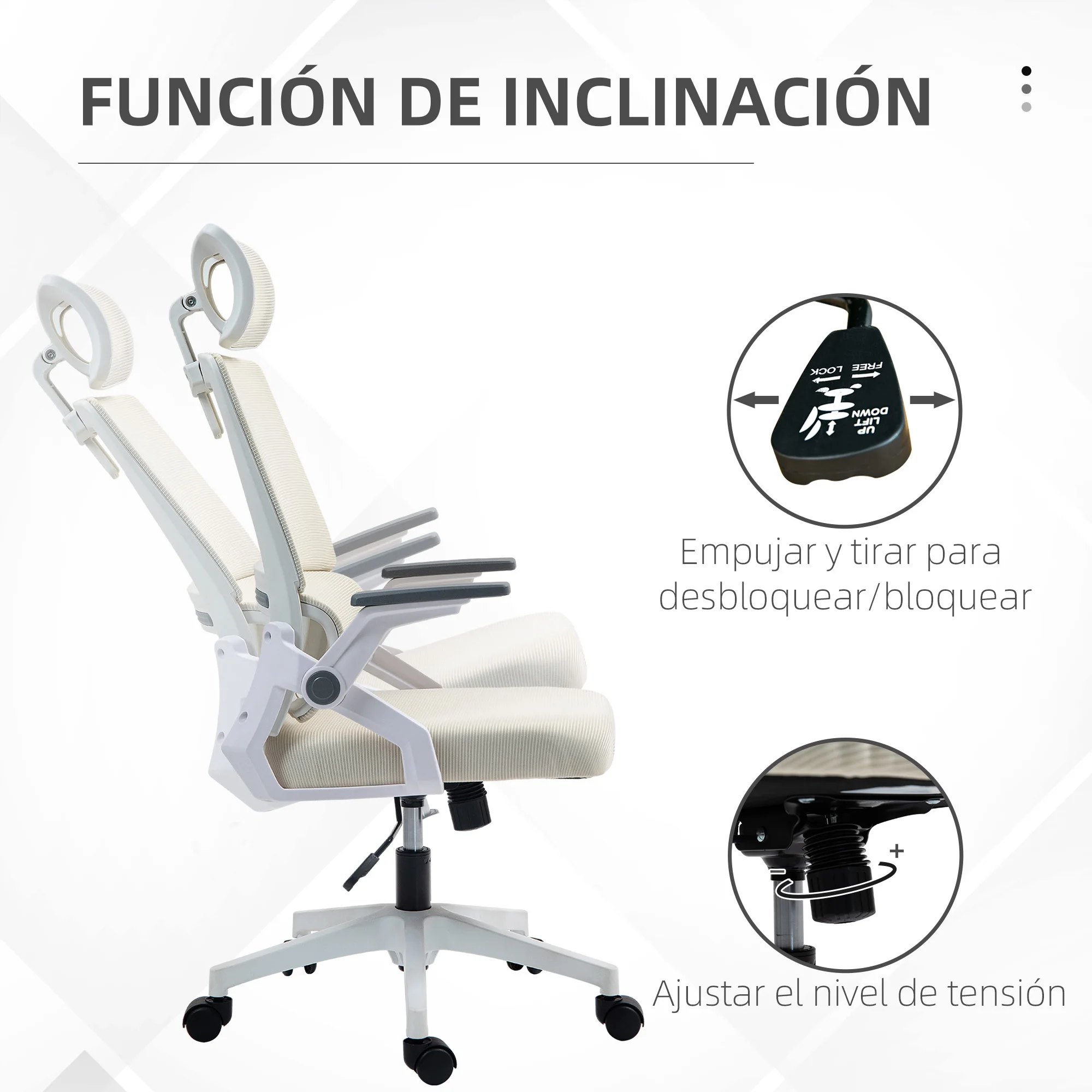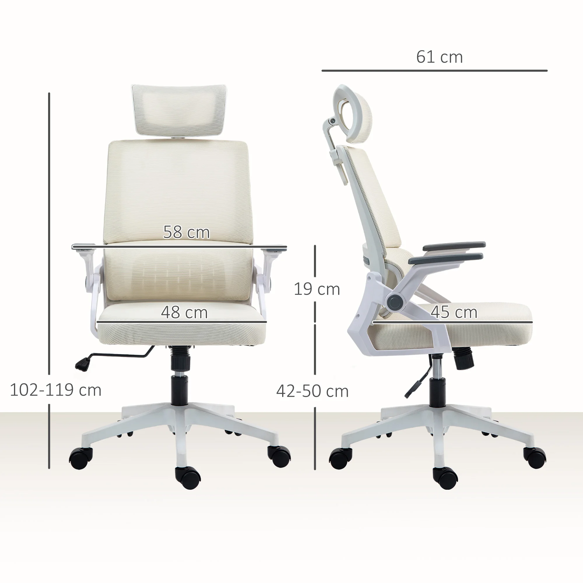 ↑Sedia da ufficio in rete Vinsetto con altezza regolabile e bracciolo Beige - TopDealBox