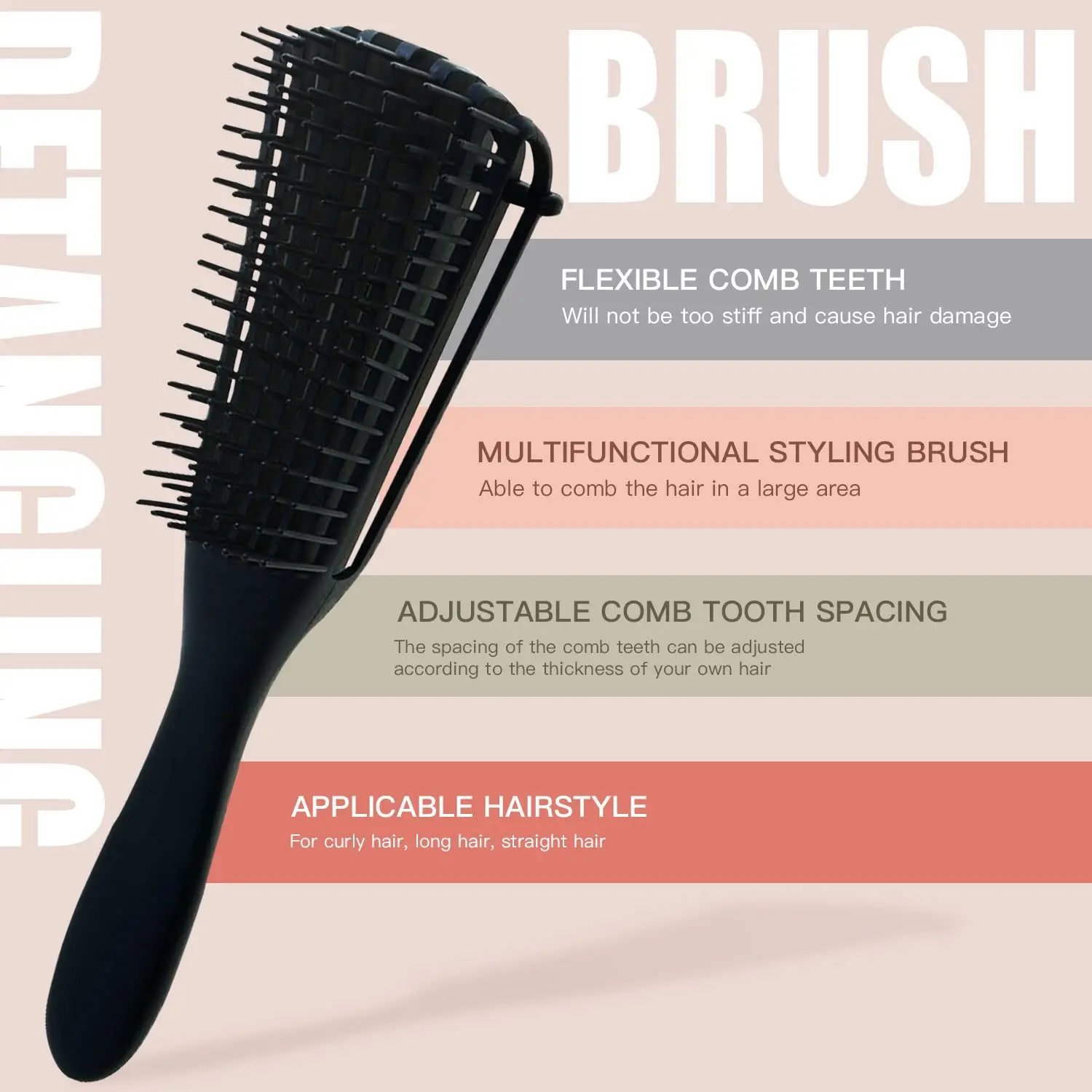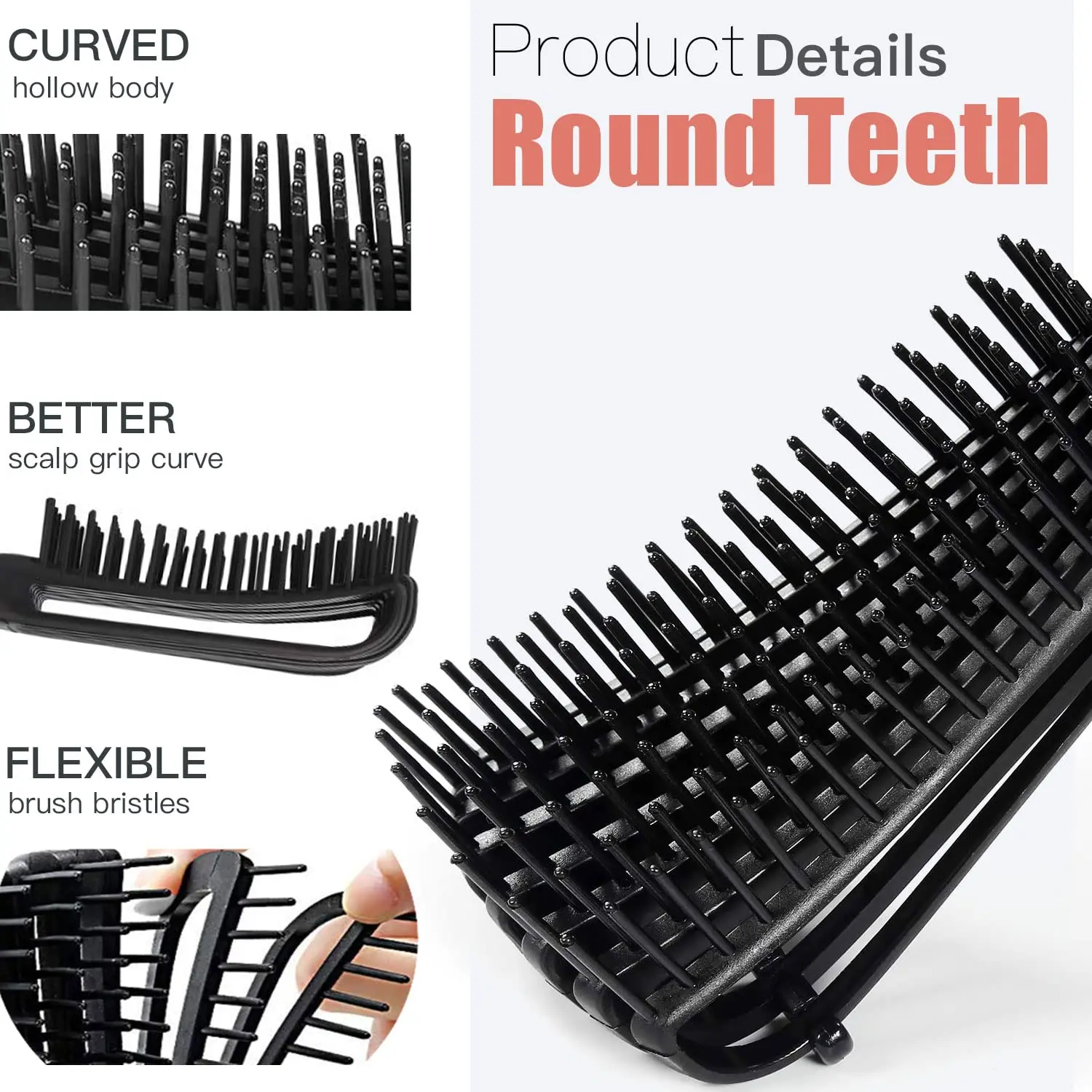 ↑Set di 5 spazzole districanti, ricci, bagnati/asciutti, capelli neri, set di spazzole districanti flessibili per acconciature e taglio, facile da pulire al quotidiano - TopDealBox
