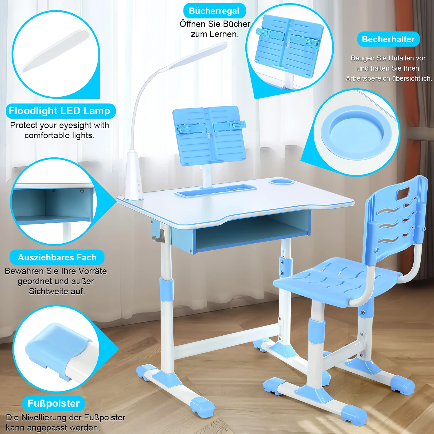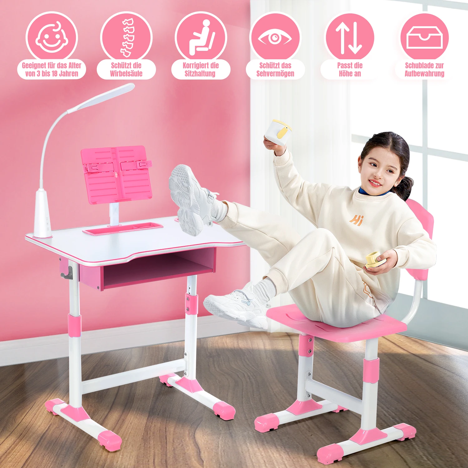β‘AnteprimaSet scrivania e sedie per bambini Oyajia, set tavolo da studio ad altezza regolabile, set tavolo e sedie per bambini con lampada, cassetto, supporto per libri66.69 EUREUR 975.35Hotβ β β β β 5.0