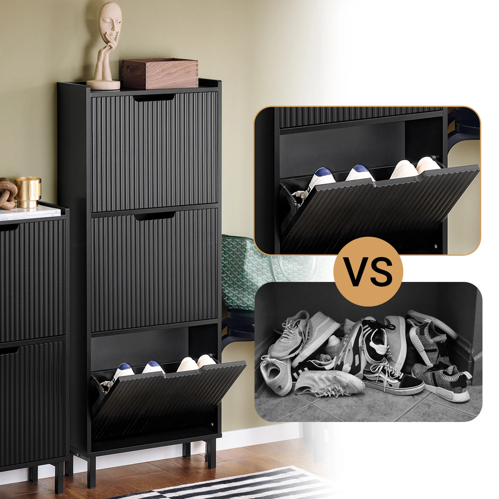 ↑SoBuy FSR177-H Scarpiera a 3 patta scarpiera stretta 3 superficie di ripiani scarpiera cassettiera scarpiera - TopDealBox