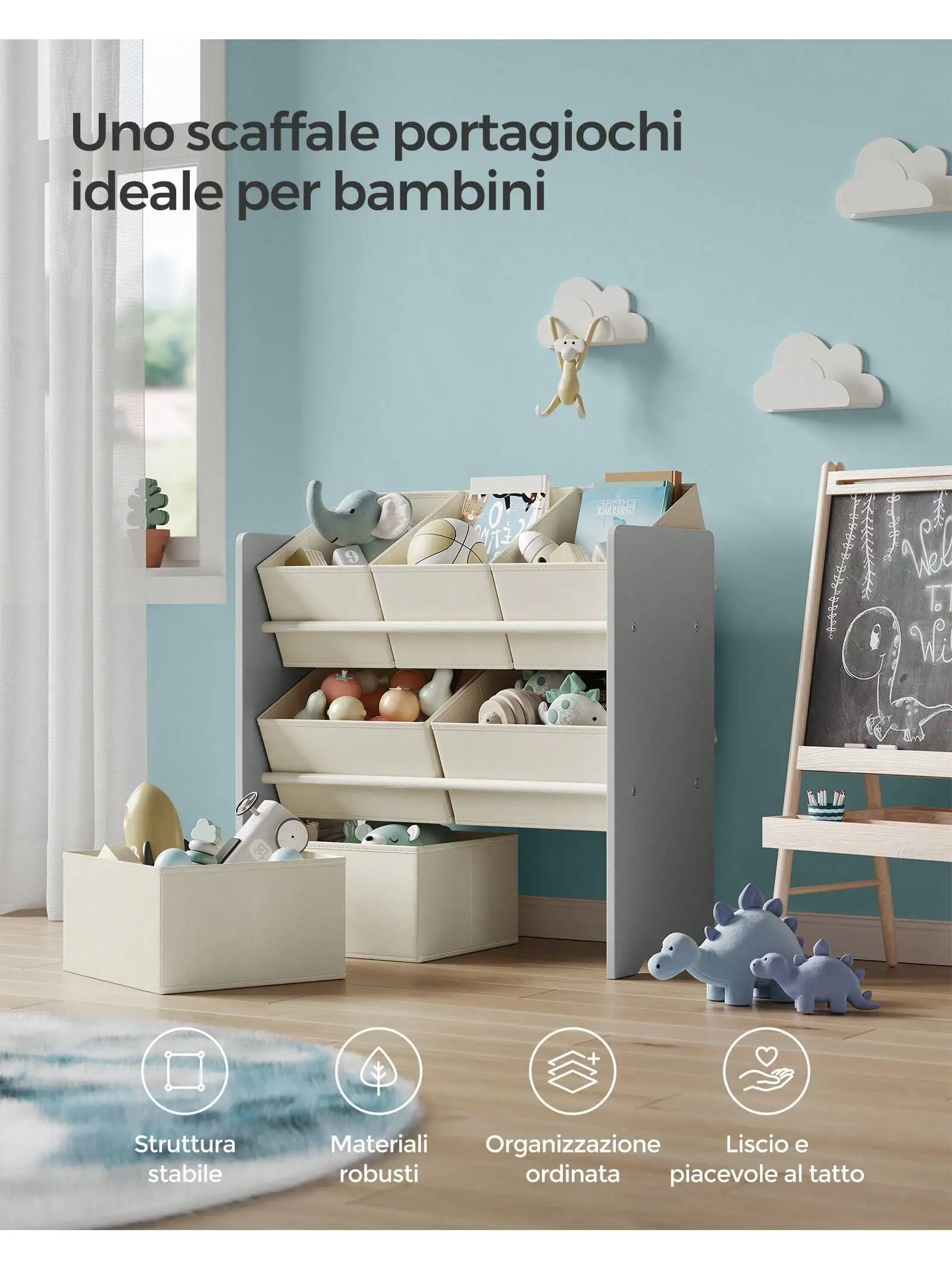 β‘AnteprimaSONGMICS Scaffale per giocattoli, Libreria per bambini, Armadietto per camera da letto con 2 contenitori per giocattoli, Sala giochi, Soggiorno, Grigio colomba62.54 EUREUR 120.27Hotβ β β β β 5.0