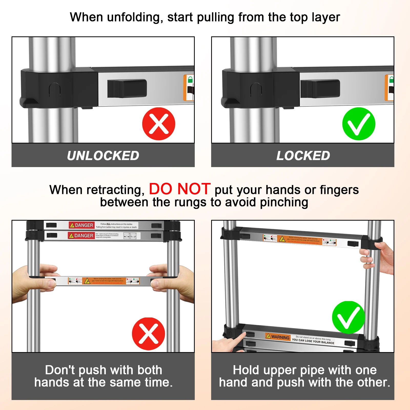 ↑Scaletta telescopica 3,2 m (10,5 piedi) – Resistente 150 kg/330 libbre, scala di estensione in acciaio inossidabile per soffitta e uso domestico – Portatile - TopDealBox