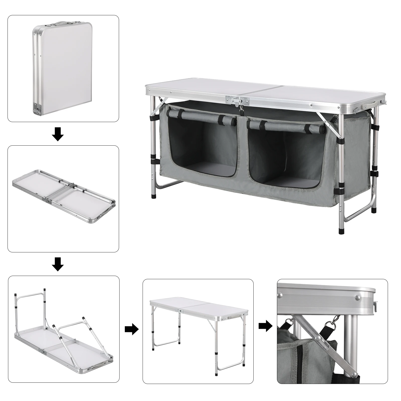 ♡AnteprimaTavolo lungo pieghevole da esterno, portaoggetti portatile, scrivania da campeggio nera, barbecue, facile da installare con borsa a rete, leggera e stabile32.89 EUREUR 502.56Hot★★★★★4.3