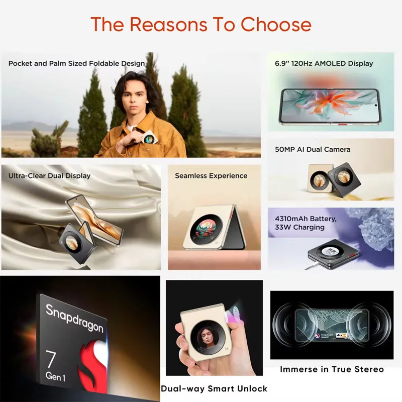 ZTE Nubia Flip Smartphone 5G 6.9 Display 120Hz Snapdragon 7 Gen 1 33W Ricarica rapida Fotocamera da 50MP Versione globale - TopDealBox